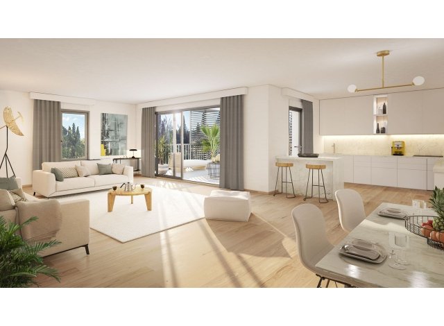 Located at 4 Allée des Amandiers, the apartment enjoys a privileged position: